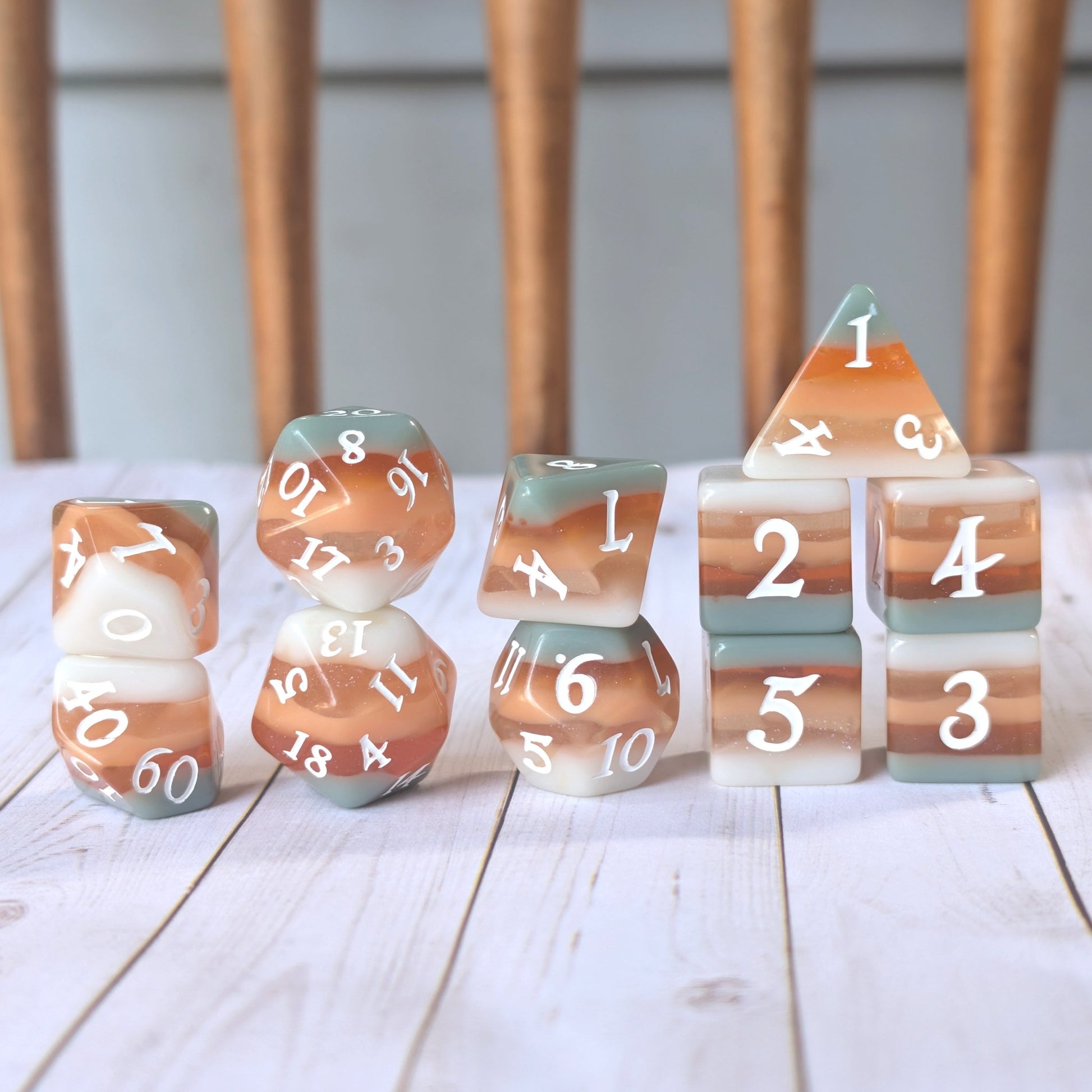 Players who love nature themes, druids, rangers, earth mages, or anyone drawn to warm, grounded palettes. Whether you're channeling the power of the land or need extra dice for your spell damage, the Horizons 11-piece set brings atmospheric elegance and versatility to every roll.